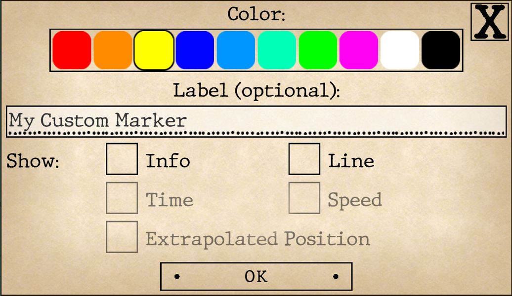 Alcance de detección: Las partes del mapa que se encuentran dentro del alcance de detección se mostrarán a todo color. Las áreas que están fuera de ese alcance se verán desaturadas y apagadas. Solo aparecerán los barcos y vehículos que se encuentren dentro de este alcance (es decir, los que sean visibles para ti). Marcador de posición: Al hacer clic en cualquier parte del mapa, se colocará un marcador de posición que mostrará: