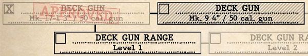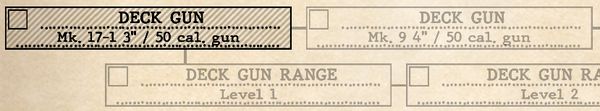 Por ejemplo, si no tienes instalada la primera mejora del cañón de cubierta, no puedes comprar la segunda mejora del cañón de cubierta NI la mejora de Alcance del cañón de cubierta.
