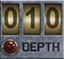 Depth gauge. Shows your current depth in meters. Status light will flash red when you're in the "danger zone" (below 200m). |