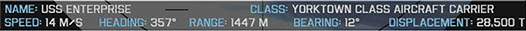 | Info on the targeted ship. Gradually fills in as data is calculated and looked up by crew. | |