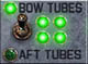 Torpedo tubes. Touch to manually switch between bow/aft tubes (switches automatically when in First-person view). Green = ready to fire, flashing green = loading, red = offline. |