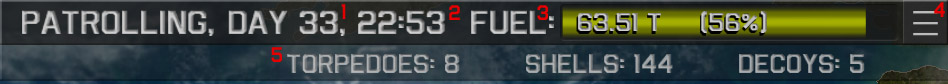 Scattered around the map are green points marked "Resupply". Sail your sub over one of those to refill on ammo and fuel.