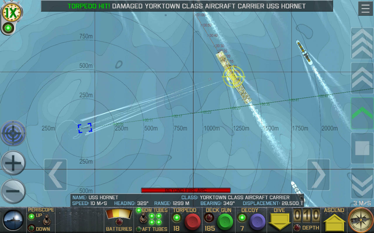 Use the chart view to plot out your attack. In this carefully-planned assault on the USS Hornet, we've found a gap in the escorts' formation.