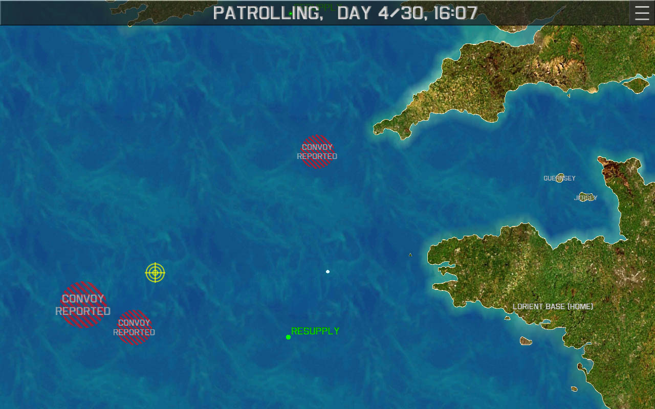 The Patrol Mode view: Head for a Resupply point when you need to repair your sub and restock your ammo.