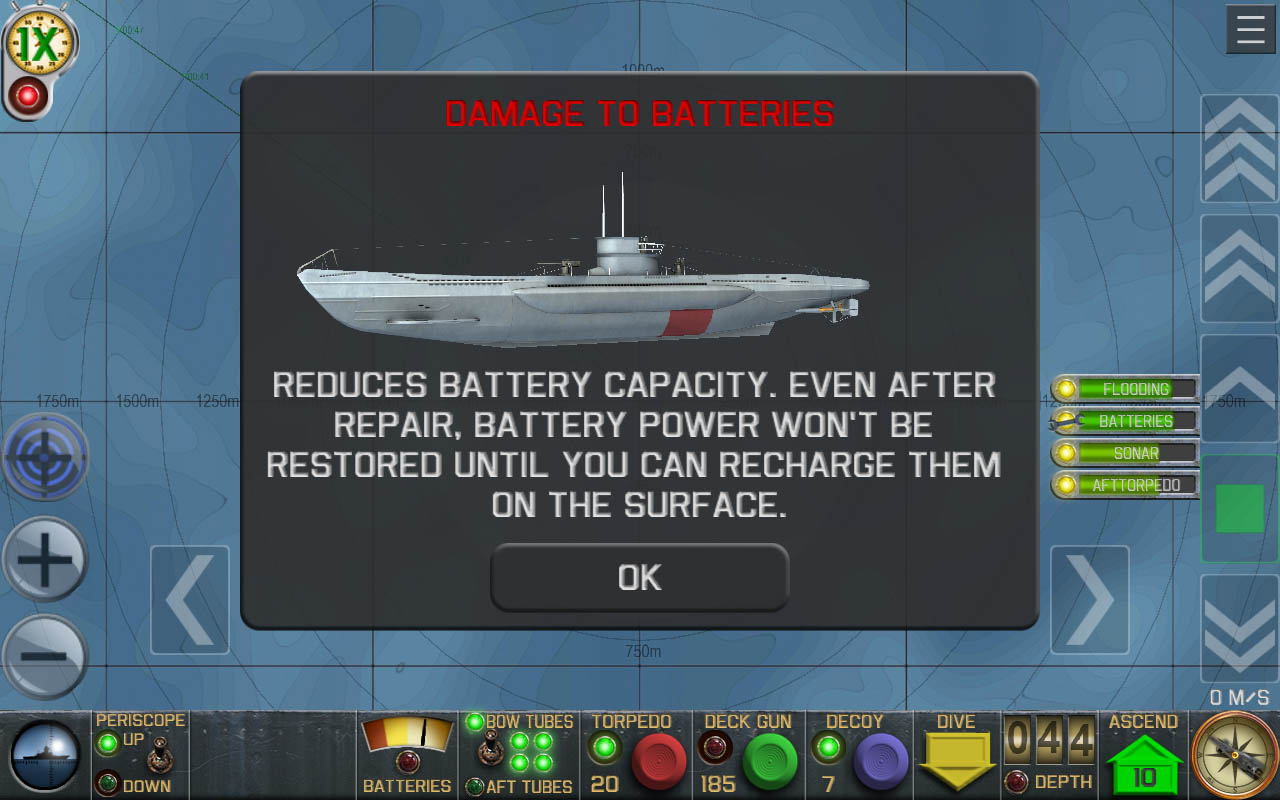 Repair the damage to your submarine before it sinks below crush depth and is destroyed.